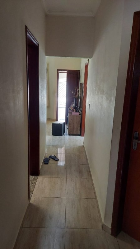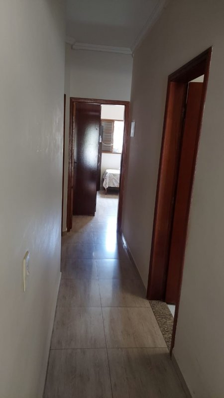 Casa térrea com 03 dormitórios, sendo 01 suíte, sala, cozinha, 01 banheiro social, garagem coberta para 02 veículos, quintal ao fundo com área de serviço coberta e com banheiro e churrasqueira.