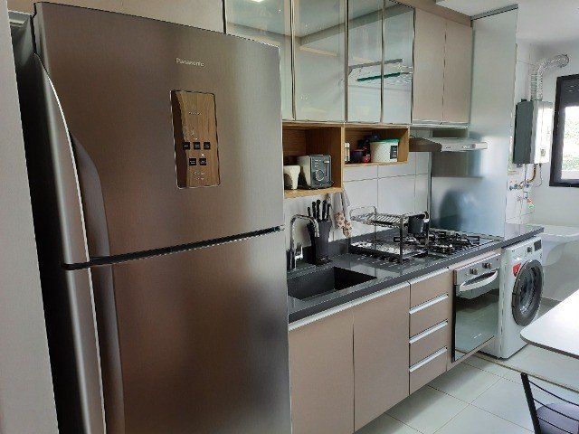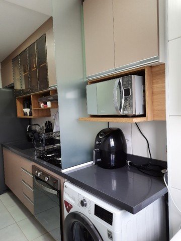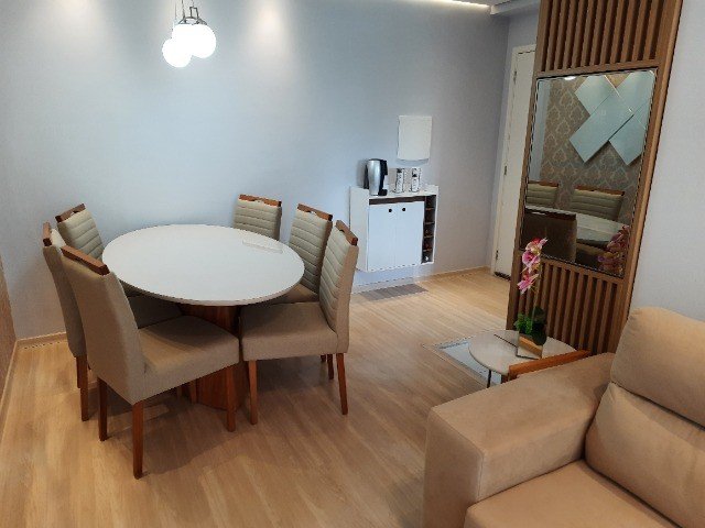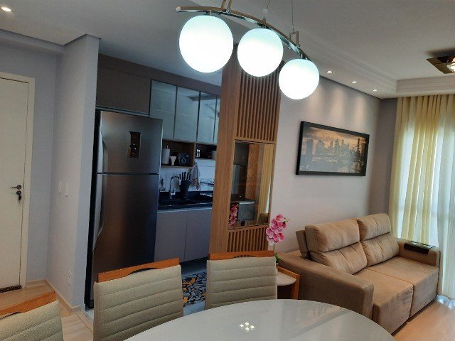 Lindo apartamento com 2 dormitórios com modulados, sendo 1 suíte, sala dois ambientes, cozinha com modulados, área de serviço, banheiro social com modulado, sacada gourmet com armário. Vaga descoberta para 1 carro. Preparação para ar-condicionado, Sol da manhã.