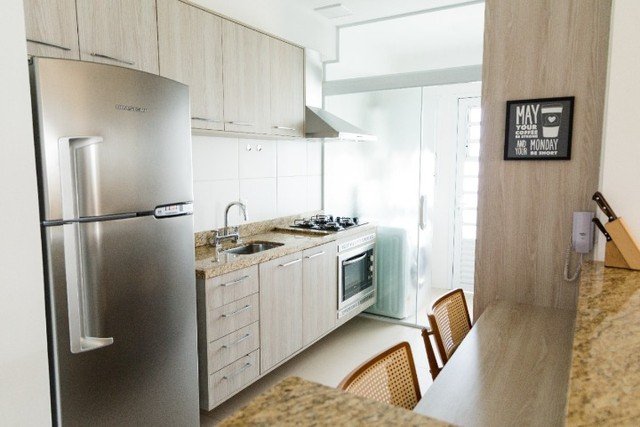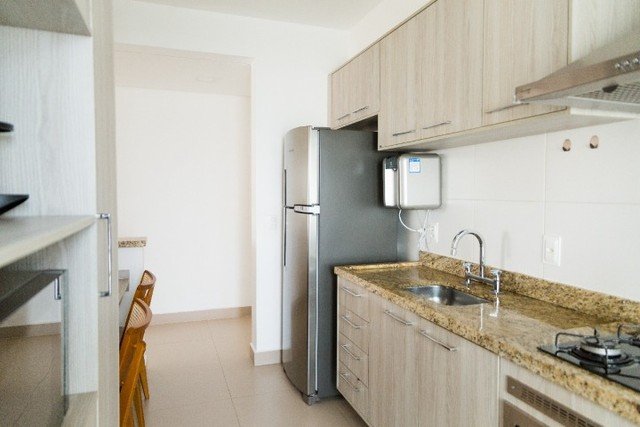 Condomínio com área de lazer completa com piscina, área fitness, salão de festas, quadra de tênis, campo de futebol, área kids, área pet, spa, sauna, óleo pet. Apartamento Pronto para Ficar, Móveis Planejados, 1 Quarto Adaptado para Mesa, Ar Condicionado, Esquentador, Área Gourmet.