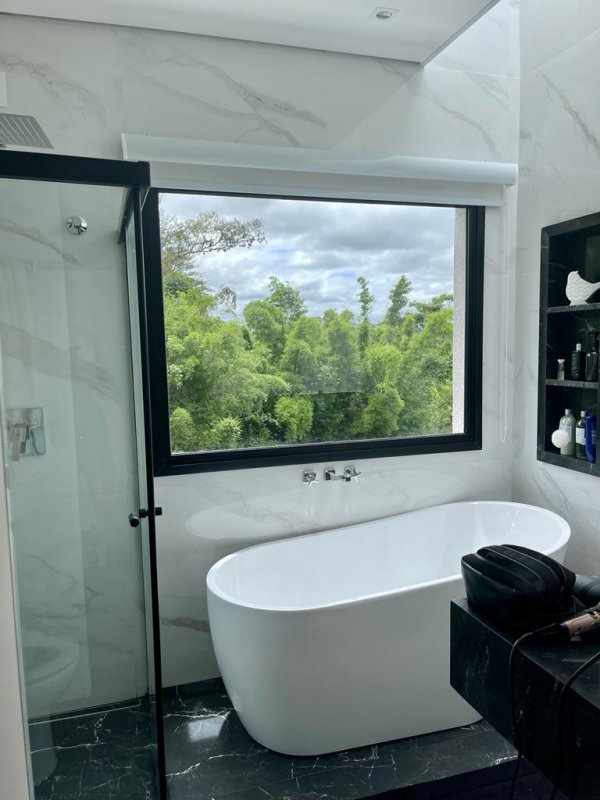 Linda casa com 3 suítes, sendo uma suíte máster com closet e banheiro com banheira de imersão da linha Jacuzzi e outras duas suítes com armários modulados;