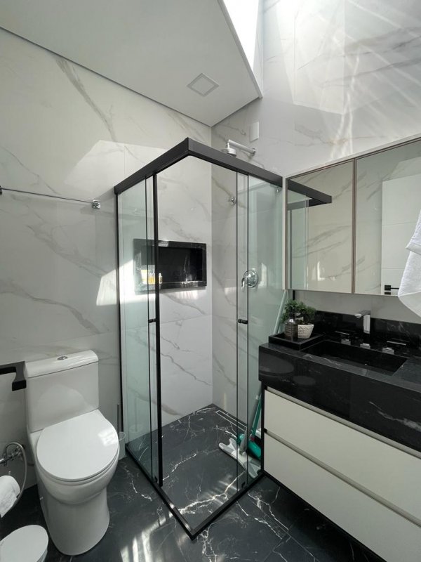 Banheiro social no piso inferior, totalizando 4 banheiros na residência;